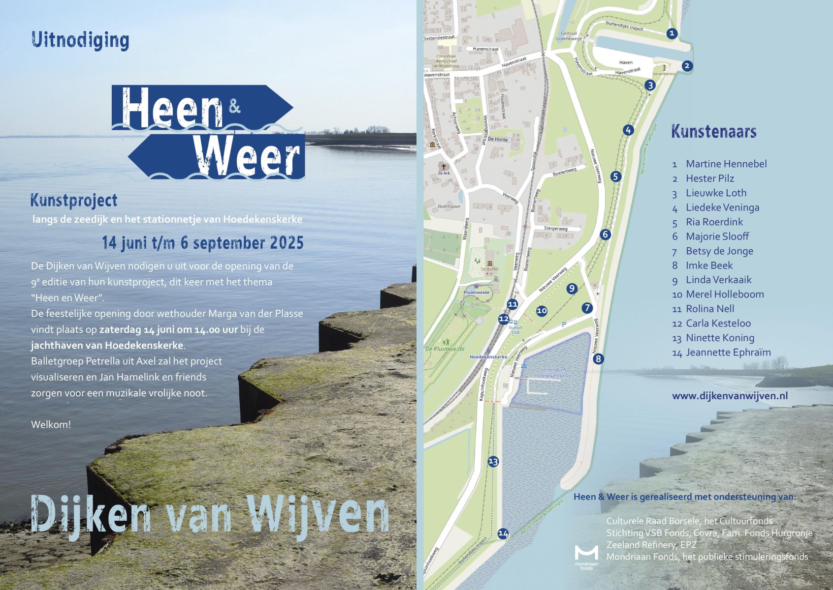 14 kunstenaars (dijken van wijven) hebben een kunstwerk gemaakt op het thema Heen en Weer.